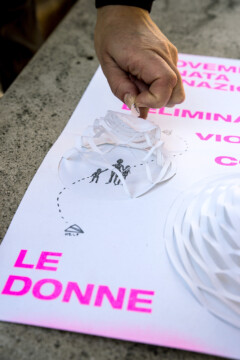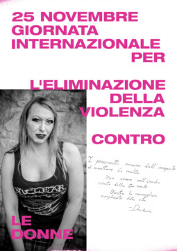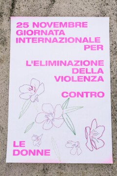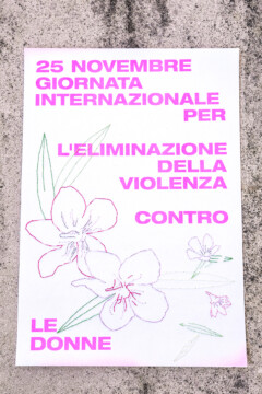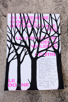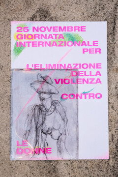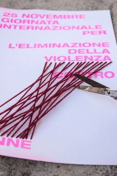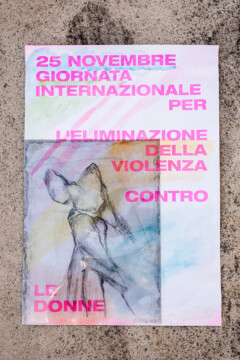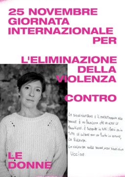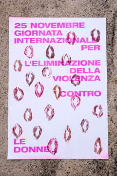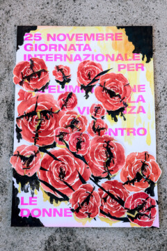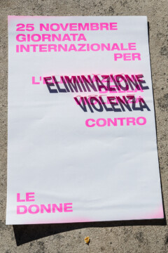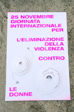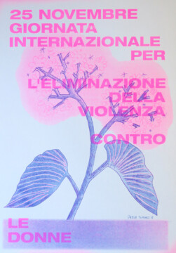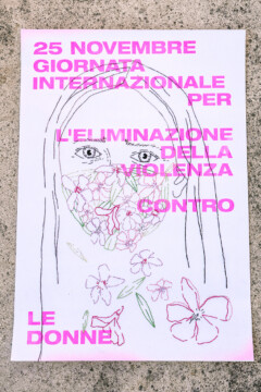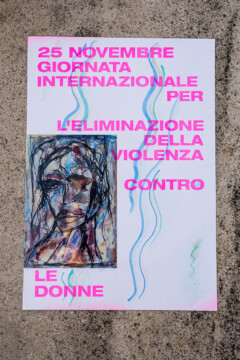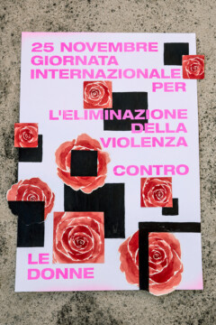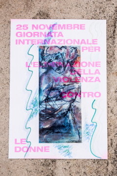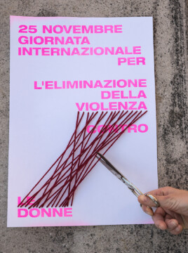Un gruppo artiste che si esprimono attraverso linguaggi diversi, dalla fotografia al disegno, dalla performance al design, daranno voce al messaggio che sta a cuore a tutte noi. A partire da una matrice comune, un poster con la dicitura “25 novembre – Giornata internazionale per l’eliminazione della violenza contro le donne”, secondo i mezzi creativi che le sono propri, ogni artista darà una propria interpretazione del messaggio, per ricreare una collettività là dove le contingenze non permettono l’incontro fisico.”
